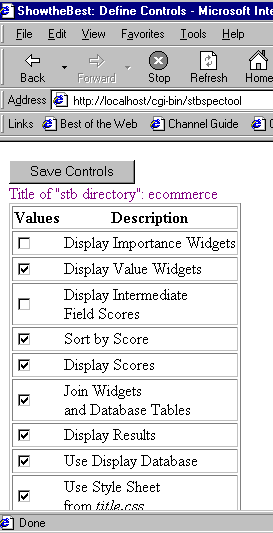 If checked then display the Importance Widgets ("weights"). Otherwise, the