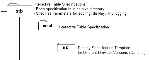 For example, suppose the Interactive Table Directory is called "meals", then header, footer, and DDB for Internet Explorer 5.0 is in meals. The "meals" Interactive Table Directory contains a subdirectory called "N47". The header, footer, and DDB for Netscape Navigator version 4.7 are placed in the "N47" subdirectory.